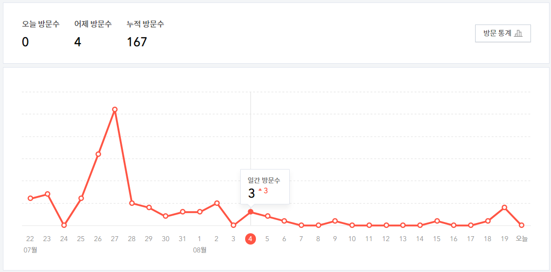 누적 방문자가 167명밖에 되지 않습니다. 글의 갯수는 19개였습니다.
