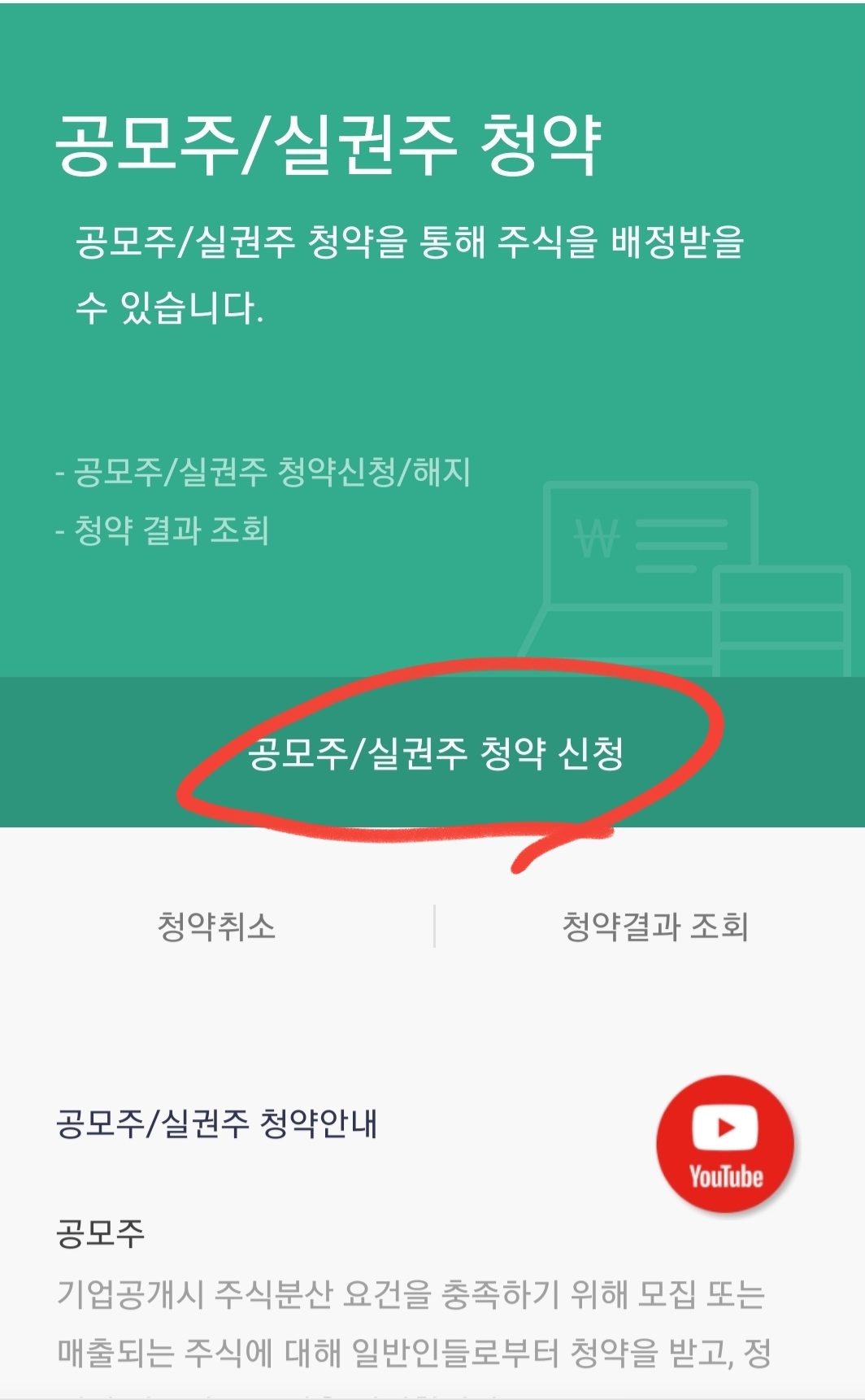 가운데 보면 공모주 청약신청이 있습니다. 누르면 됩니다.