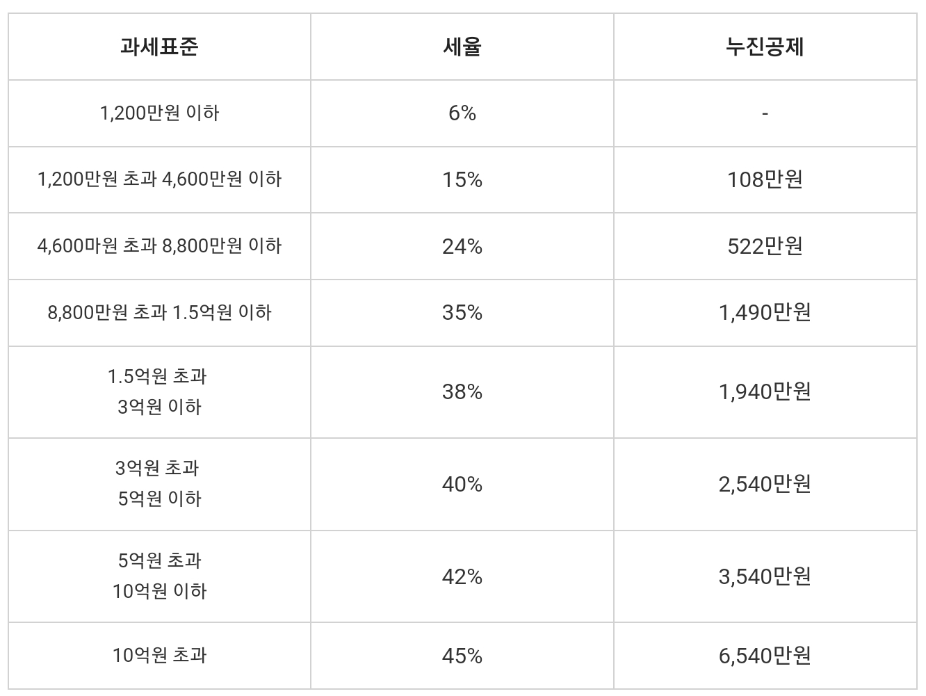 소득세는 위의 표와 같고 소득세의 10%는 지방소득세로 냅니다.